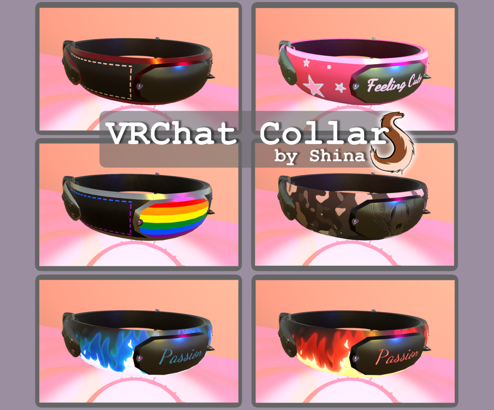 A slim customizable collar with a nameplate and different texture styles - made for VRChat.